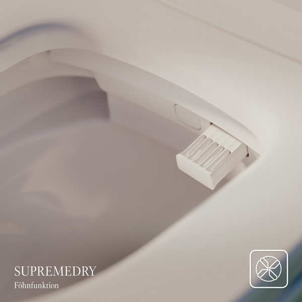 Bei Supreo stehen die Hygiene-Funktionen im Fokus, während Supreo Select mit zusätzlichen Komfort-Funktionen aufwartet. Beide Varianten bieten mehrere Strahlarten, automatische Spülung, Reinigung des Duschstabs mit Frischwasser und UV-Licht-Desinfektion, Geruchsabsorption mit Gesteinsfilter sowie Raumluftreinigung via Ionisator – ideal für innenliegende Bäder ohne Fenster. Highlights beider Modelle sind der leicht schwingende, hautschonende Duschstrahl HarmonicWave 2.0 und der patentierte Föhn SupremeDry mit zielgerichtetem und besonders starkem Luftstrom. Außerdem verfügen beide über Innenbeleuchtung und AmbiLux, ein dimmbares Lichtband für Orientierung und für Lichtstimmung im Bad, und arbeiten mit einer zuverlässigen Sensorsteuerung zur intelligenten Benutzungserkennung. Supreo Selectpunktet darüber hinaus mit einer Sitzheizung mit energiesparendem EcoMode und einer praktischen Öffnungsautomatik. Mit zeitgemäßem Design und zwei Farboptionen in Weiß Alpin und Pure Black, werten die Supreo und Supreo Select Dusch-WCs jedes Premium-Bad auf.